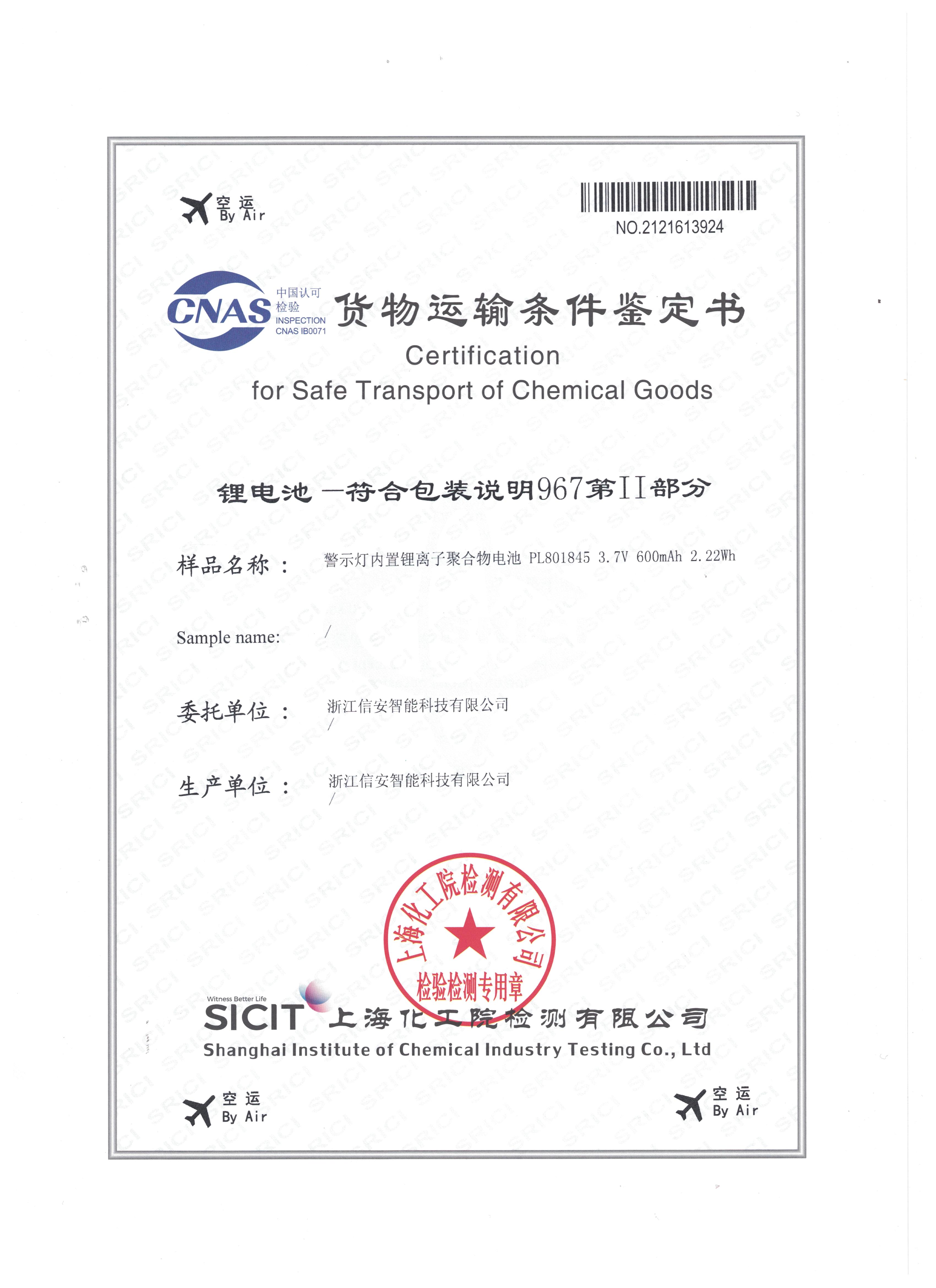 - 肩燈 貨物運(yùn)輸條件鑒定書(空運(yùn))