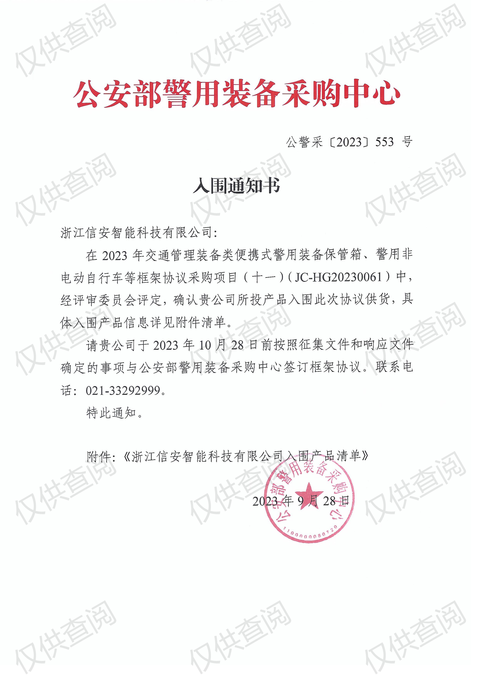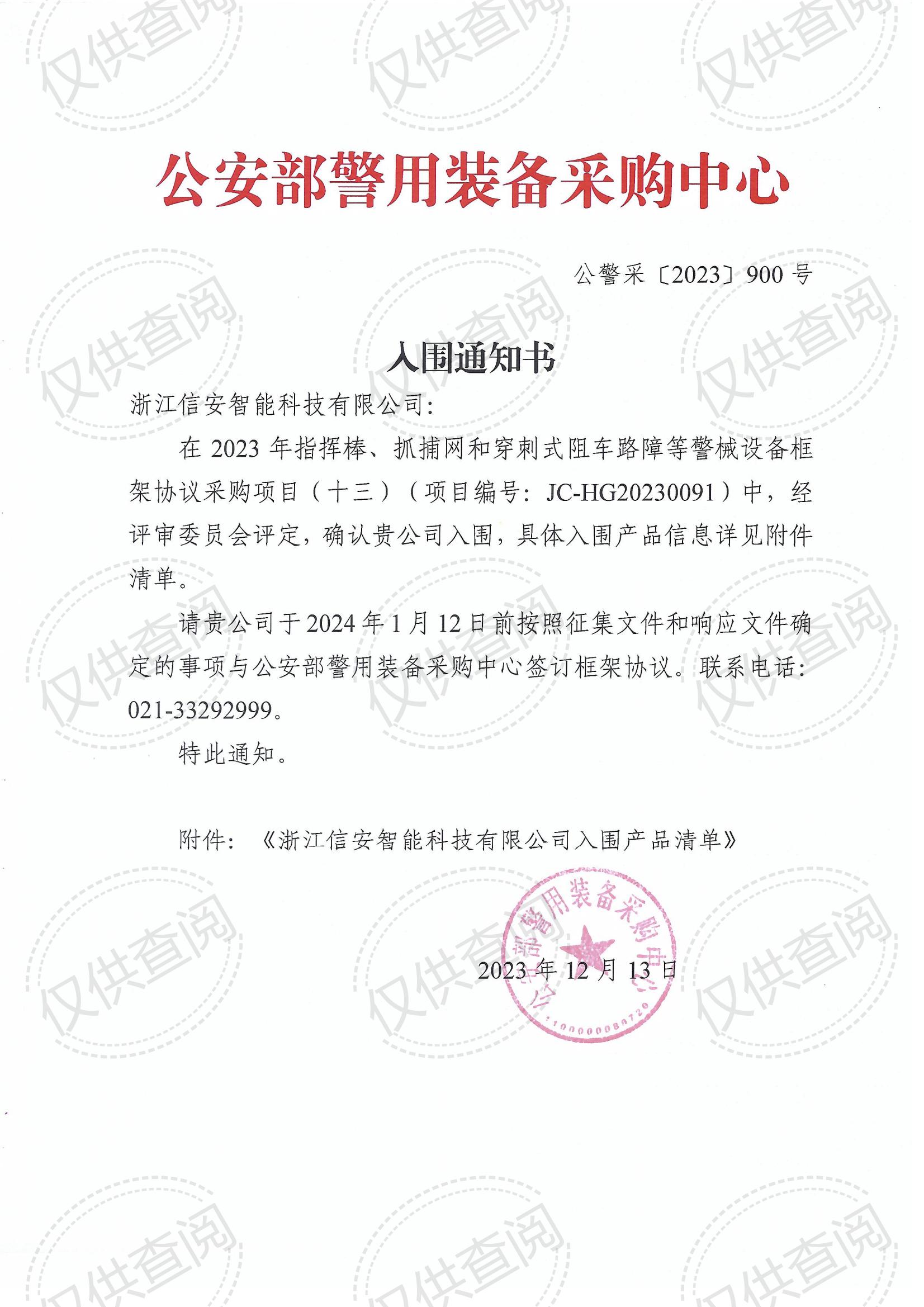 012入圍通知書(B級仿真警車、基礎(chǔ)型仿真警察)