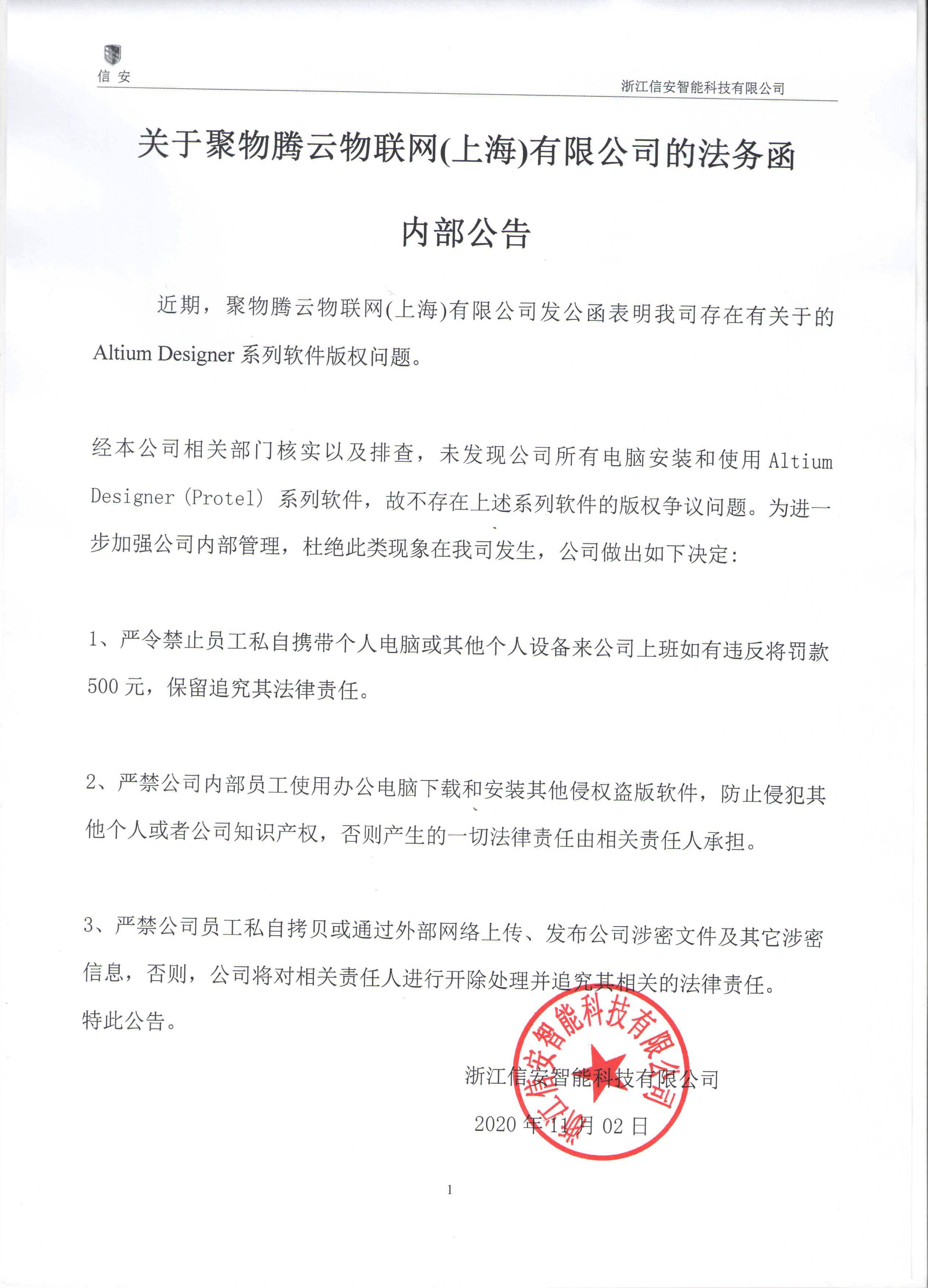 關(guān)于聚物騰云物聯(lián)網(wǎng)(上海)有限公司的法務(wù)函內(nèi)部公告