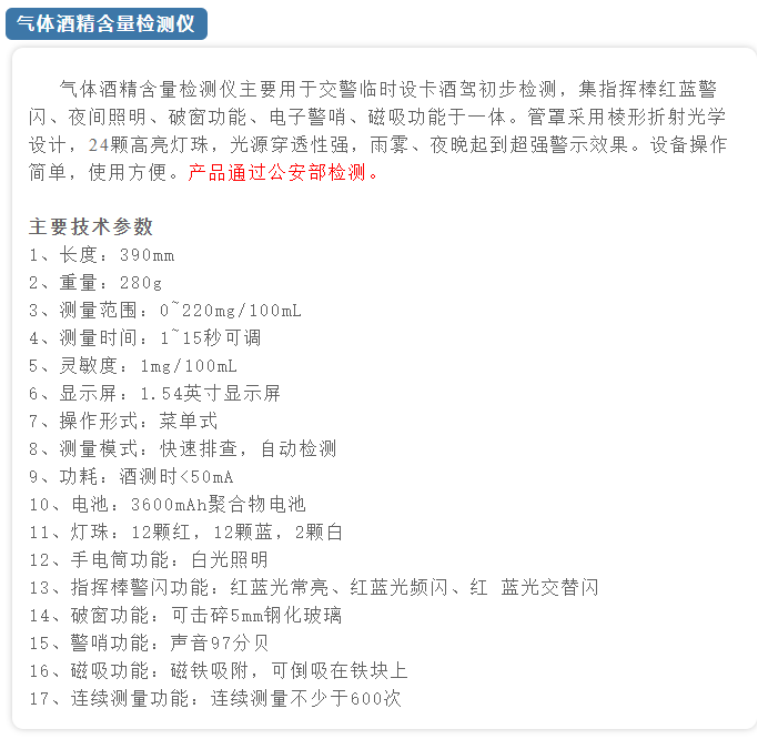在新一期公安部警用裝備采購(gòu)中心 “警用通信設(shè)備、安全檢查監(jiān)視報(bào)警設(shè)備、出入境設(shè)備、網(wǎng)絡(luò)監(jiān)察設(shè)備公開遴選項(xiàng)目” 中,浙江信安智能科技有限公司所投產(chǎn)品入圍第86包 “氣體酒精含量檢測(cè)儀”。
