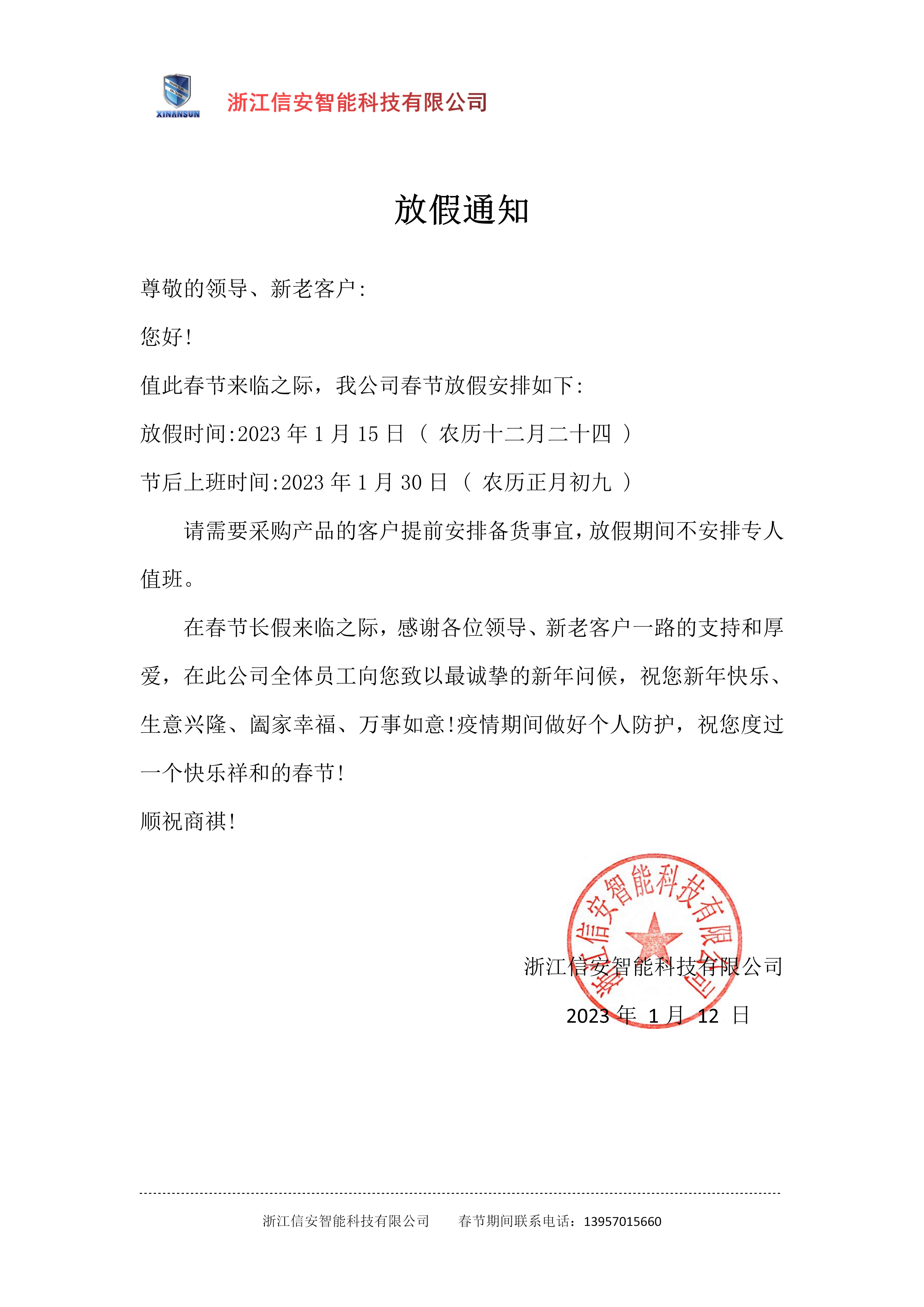 值此農(nóng)歷新春佳節(jié)來臨之際,我司春節(jié)放假安排如下: