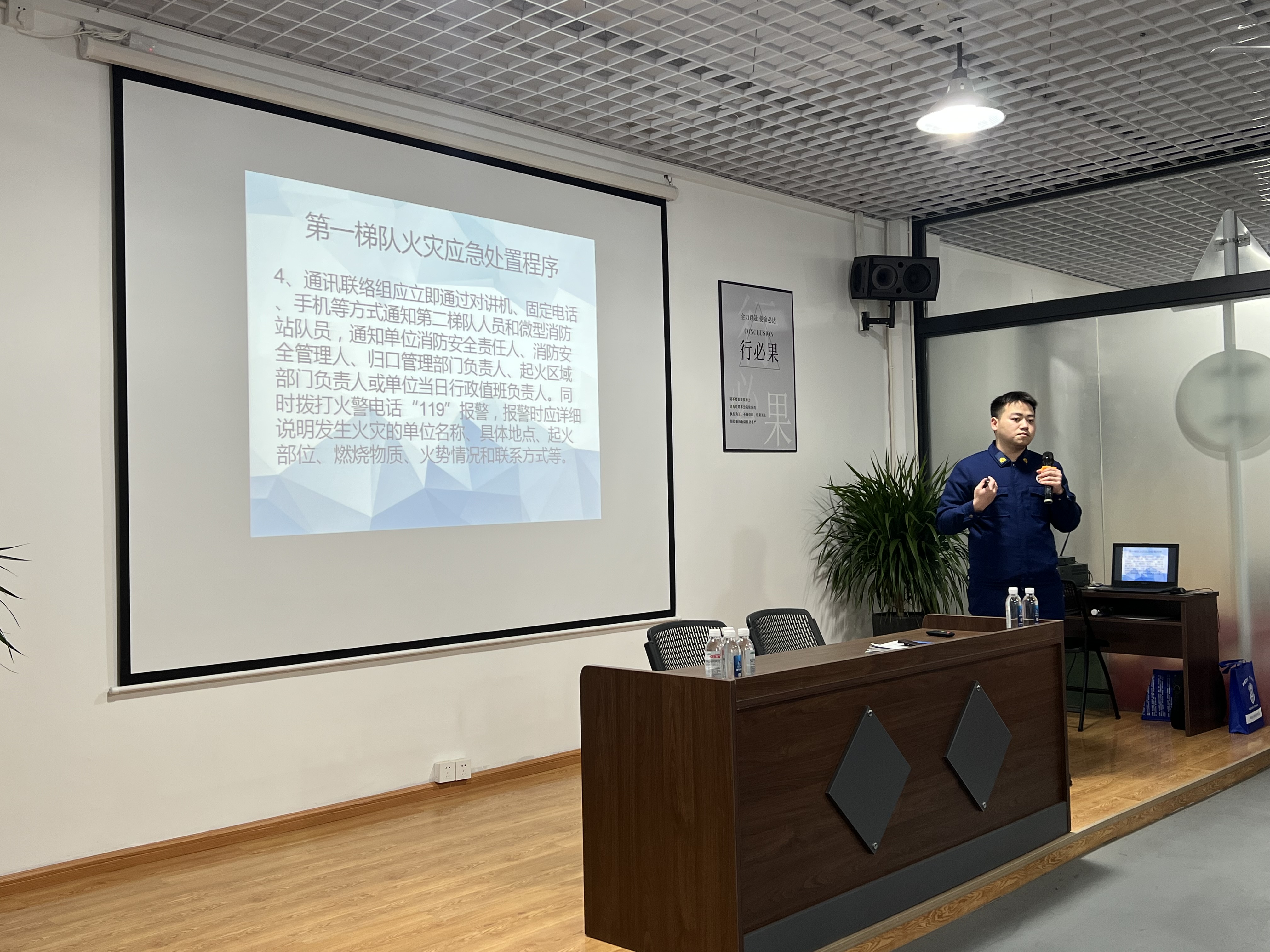 培訓(xùn)會(huì)上,詹教官通過精心準(zhǔn)備的PPT課件和精彩的演講,讓全體員工真切地感受到平時(shí)生產(chǎn)生活中火災(zāi)的危害性及消防安全意識(shí)和能力的重要性。通過學(xué)習(xí),大家更深入的了解和熟悉了當(dāng)發(fā)生火災(zāi)后的應(yīng)急處置預(yù)案,做到有滅火技能、有職責(zé)分工、有專業(yè)裝備,能使用消防設(shè)施器材滅火、能疏散引導(dǎo)人員、能與消防隊(duì)聯(lián)動(dòng)。