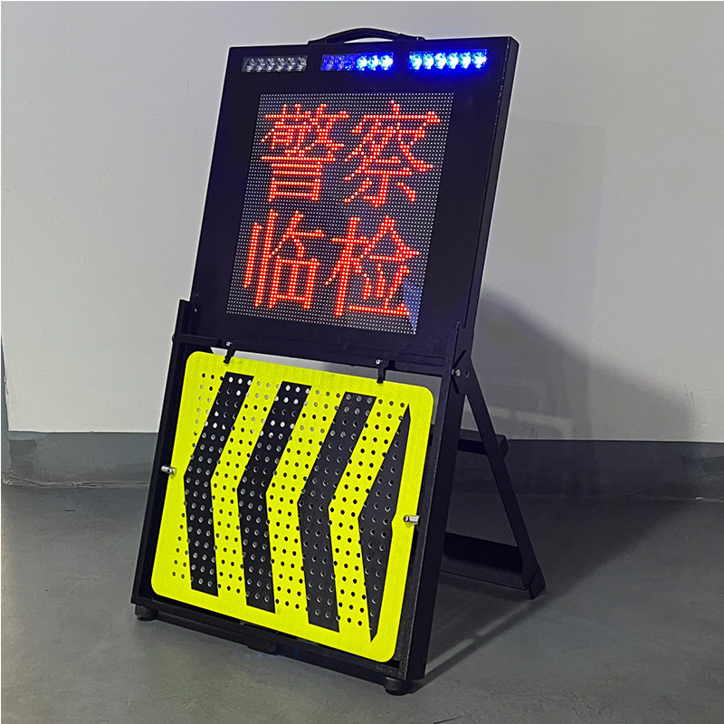 發(fā)光警戒屏由紅藍(lán)爆閃燈、可編輯LED全彩顯示屏、反光警示牌組成,具備伸縮折疊收納功能,使用時可快速展開部署,折疊收納后可放入后備箱。配備一體式紅藍(lán)爆閃警示燈,顯示屏文字內(nèi)容及符號可通過手機(jī)WiFi連接自行編輯更改,適應(yīng)不同場景需求使用。下方反光警示牌雙面可翻轉(zhuǎn)切換使用,夜間具備超強(qiáng)反光警示效果。