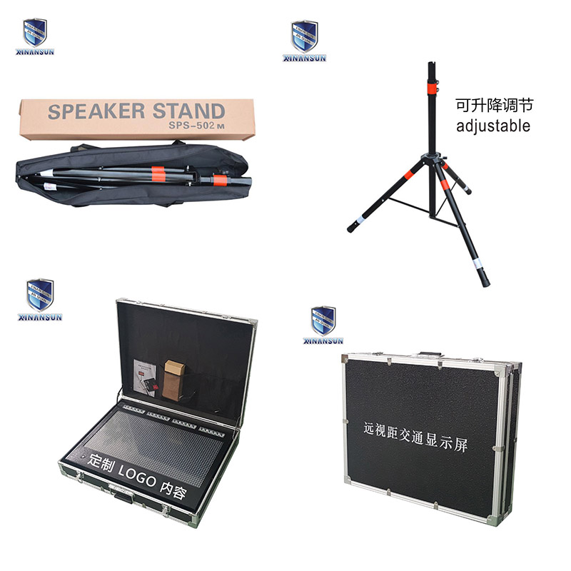 LED顯示屏高亮度、尺寸大,發(fā)光亮度可調,在陽光下、夜晚、霧天、雨天等各種環(huán)境下均能做有效顯示。支架可升降,收縮,方便攜帶,移動。屏體外包裝高強度鋁合金箱。特制加配重三角架外包裝采用可背或手提式雙用防水牛津布袋。