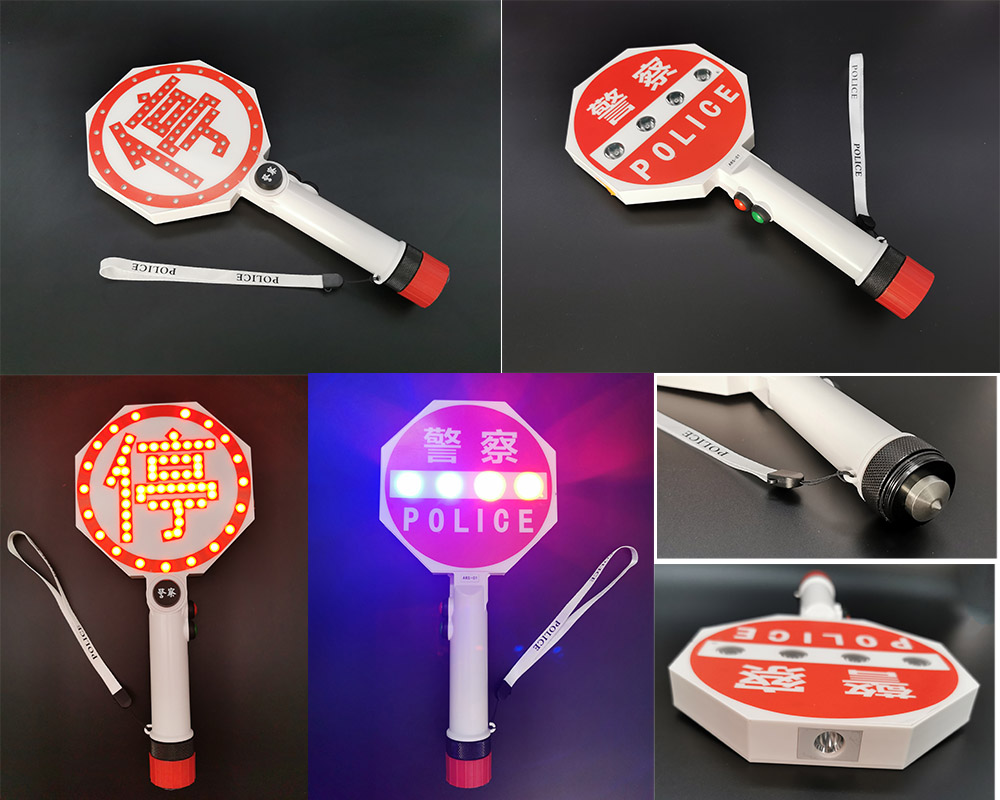 多功能手持停車牌具備多種功能,集“!弊珠W爍、紅藍(lán)爆閃警示燈、夜間照明、電子警哨、破窗功能于一體。適用于警察臨檢,事故現(xiàn)場警示,破窗救援,交通指揮,疏散人群等場合。