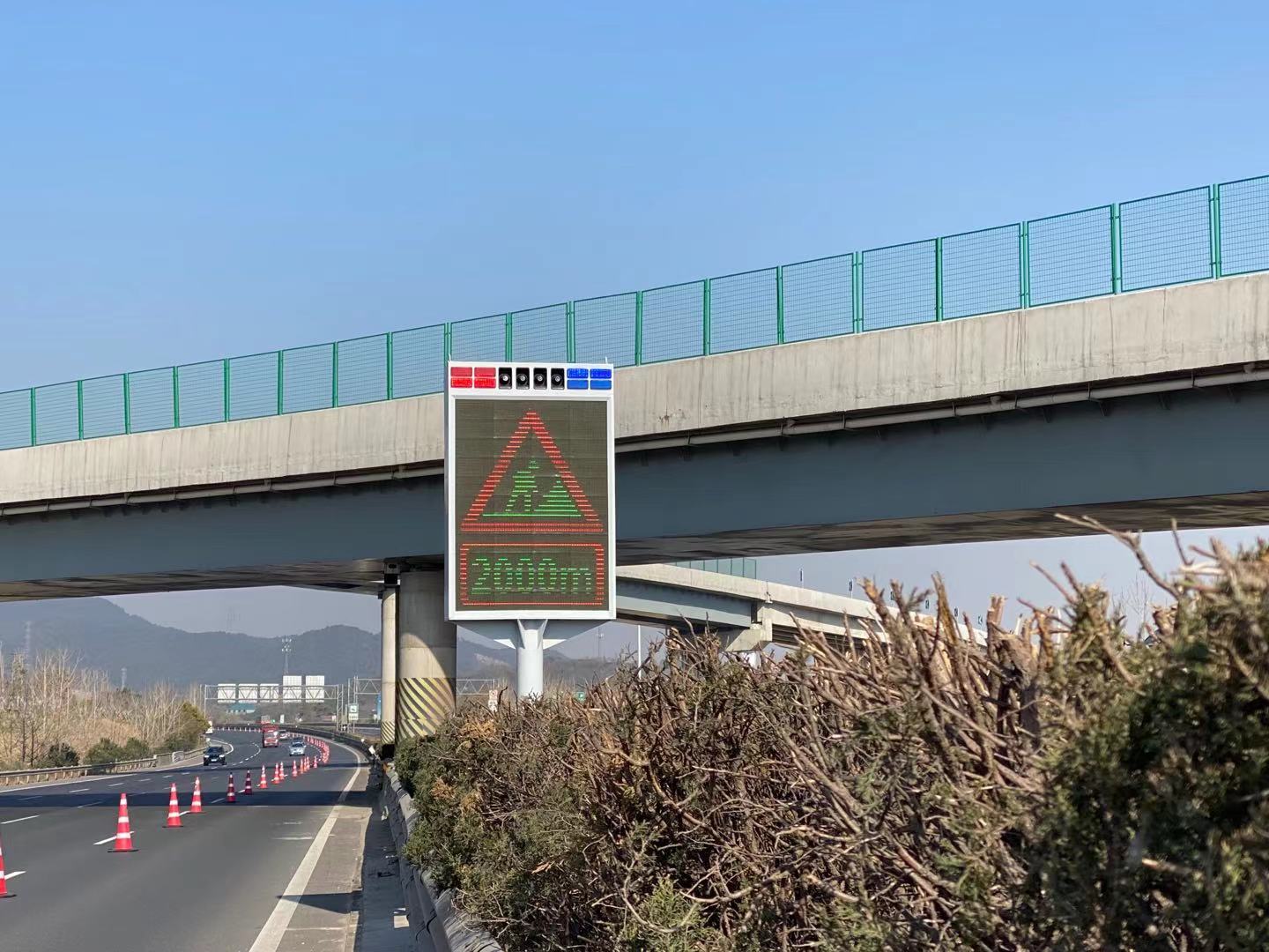 本設(shè)備為高速公路預(yù)警屏,是一種通過高速公路控制中心及手機(jī)APP主動(dòng)遠(yuǎn)程控制警示發(fā)光的安全預(yù)警設(shè)備。主要由紅藍(lán)爆閃警示燈、LED顯示屏、大功率揚(yáng)聲器(警報(bào)+語音播放)組成?娠@示交通符號(hào)、限速標(biāo)志、文字內(nèi)容,具有可視距離遠(yuǎn),警示效果好等特點(diǎn)。有效起到預(yù)警預(yù)防二次交通事故,車輛分流提醒等功能。