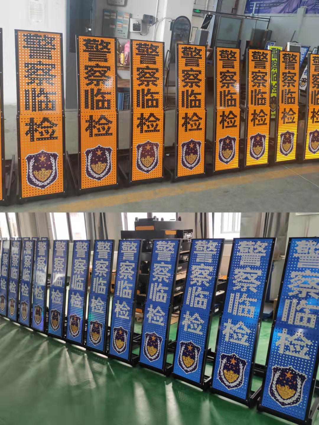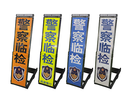 2、標(biāo)志牌文字內(nèi)容:警察臨檢、交通管制、前方事故、禁止超車(以上文字內(nèi)容可根據(jù)客戶要求定制)